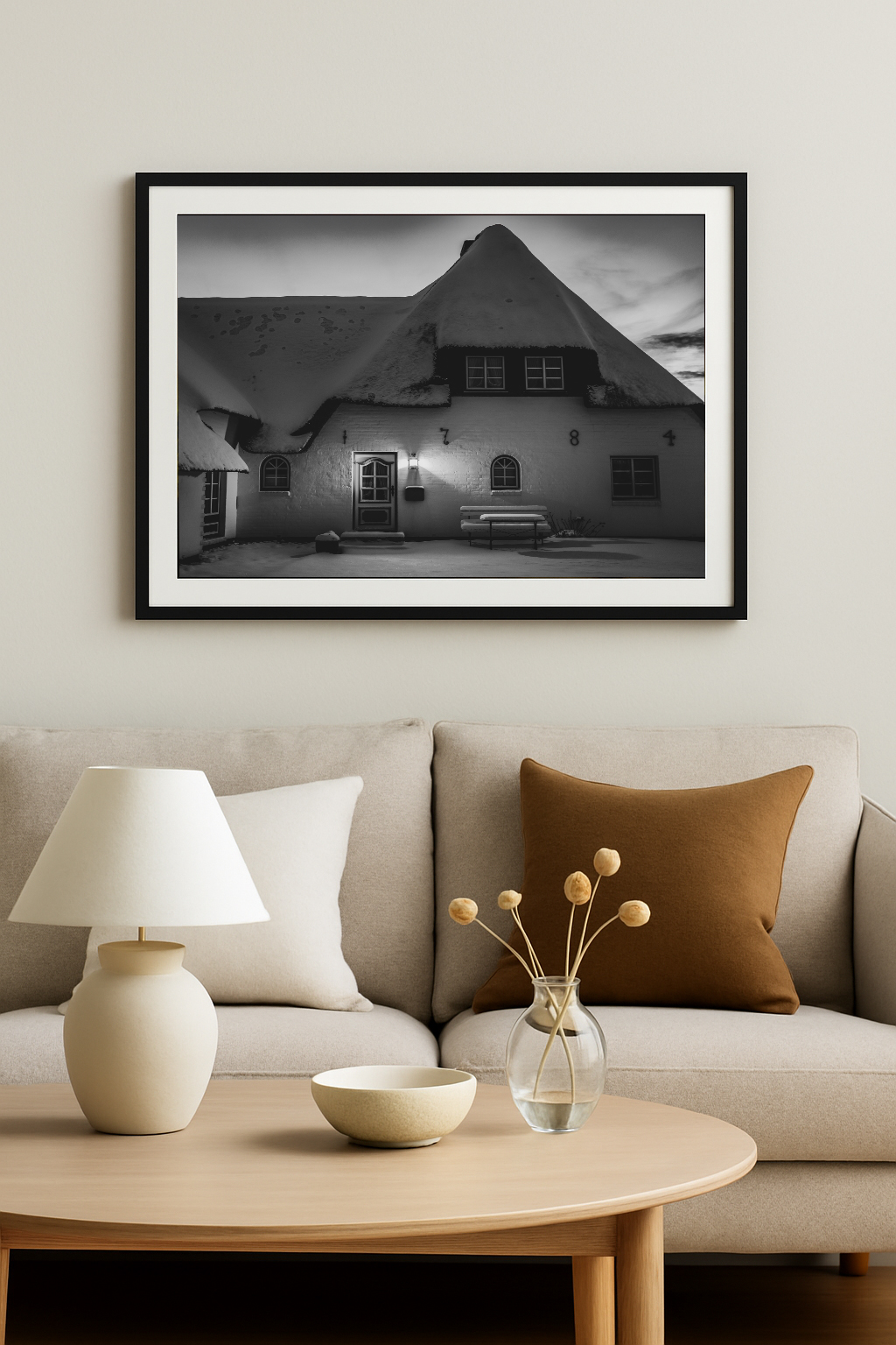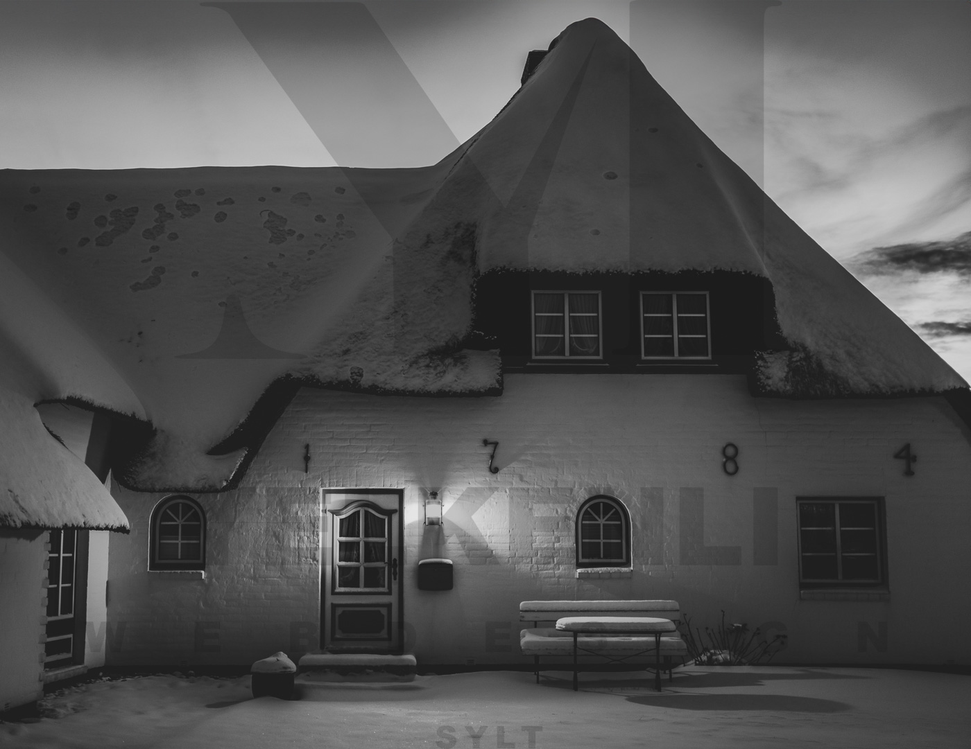 Wenn der Winter auf Sylt einkehrt, kehrt auch die Stille ein – so wie in diesem Bild aus Tinnum. Die dicke Schneedecke auf dem Reetdach, das schwache Licht an der Eingangstür und die Spuren im Schnee erzählen von einer friedlichen Inselnacht. Die Schwarzweiß-Umsetzung verstärkt die besondere Ruhe und zeitlose Atmosphäre dieses Moments – eingefangen in einem einzigen, stillen Augenblick.